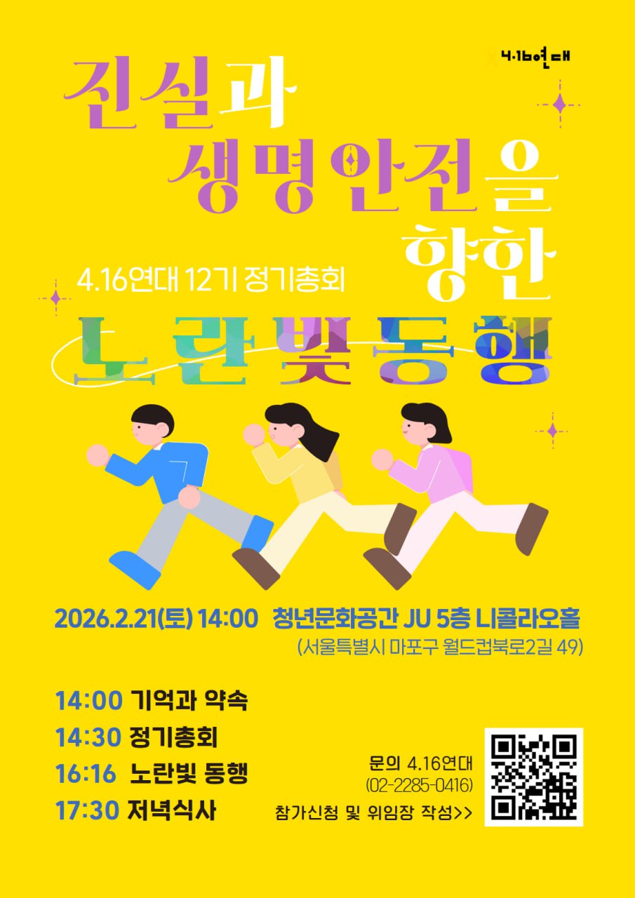 이번 총회는 단순한 결산의 자리가 아닙니다. 여전히 규명되지 않은 진실을 향해, 그리고 다시는 참사가 반복되지 않는 생명 안전 사회를 향해 우리가 어떻게 더 단단하게 나아갈지 지혜를 모으는 자리입니다. 지난 2025년의 활동을 성찰하고, 2026년 우리가 함께 걸어갈 새로운 이정표를 세우는 이 중요한 시간에 회원 여러분이 주인이 되어 함께해 주십시오.