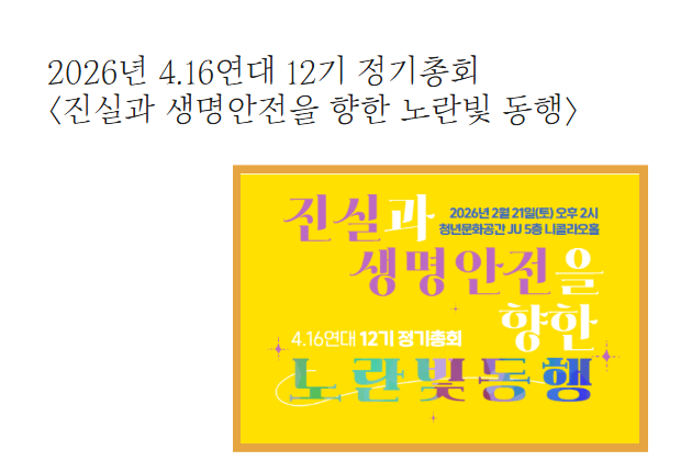 변함없는 기억과 약속으로, 서로가 서로의 빛이 되어주는 따뜻한 동행을 기다립니다. 참석해주셔서 2026년의 4.16연대 활동에 의견을 내어주세요!